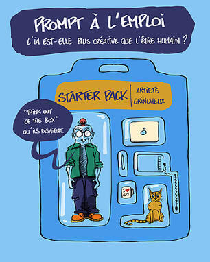 « Prompt à l’emploi. L’IA est-elle plus créative que l’être humain ? », planches de BD du journaliste et dessinateur de presse, Pierre Pauma, réalisées pour le media Savoir(s) de l’Université de Strasbourg.